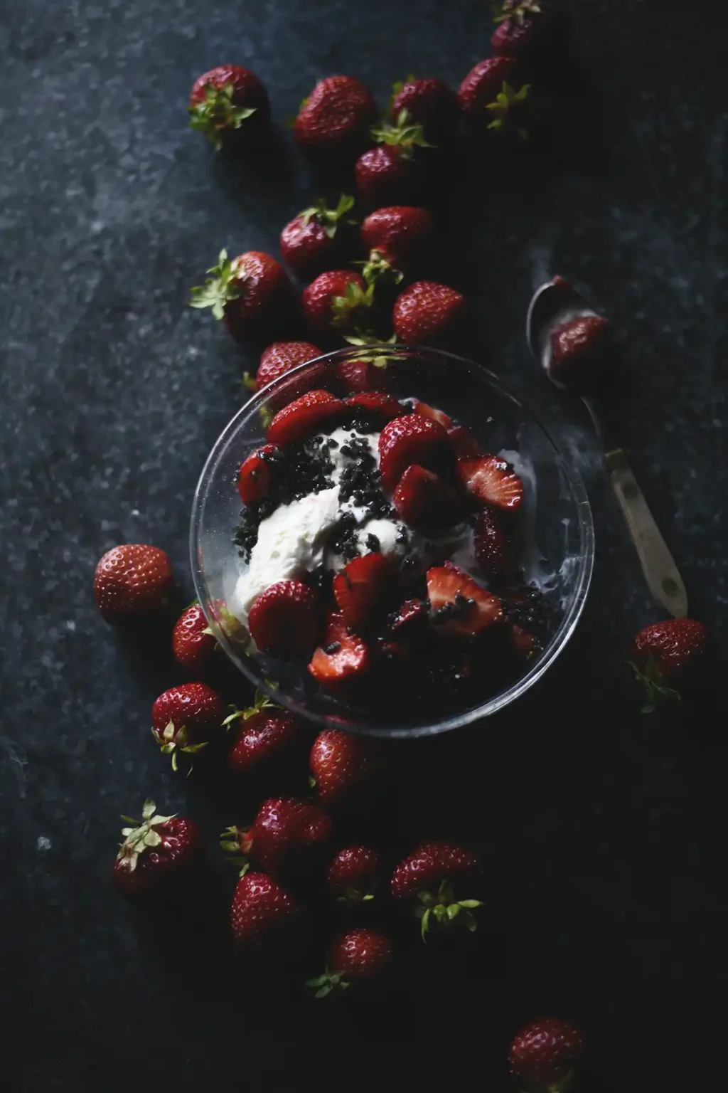 Lusikoi kulhoon jäätelöä, pilko päälle tuoreet mansikat ja ripottele viimeisenä päälle turkinpippurimurskaa. Nauti!