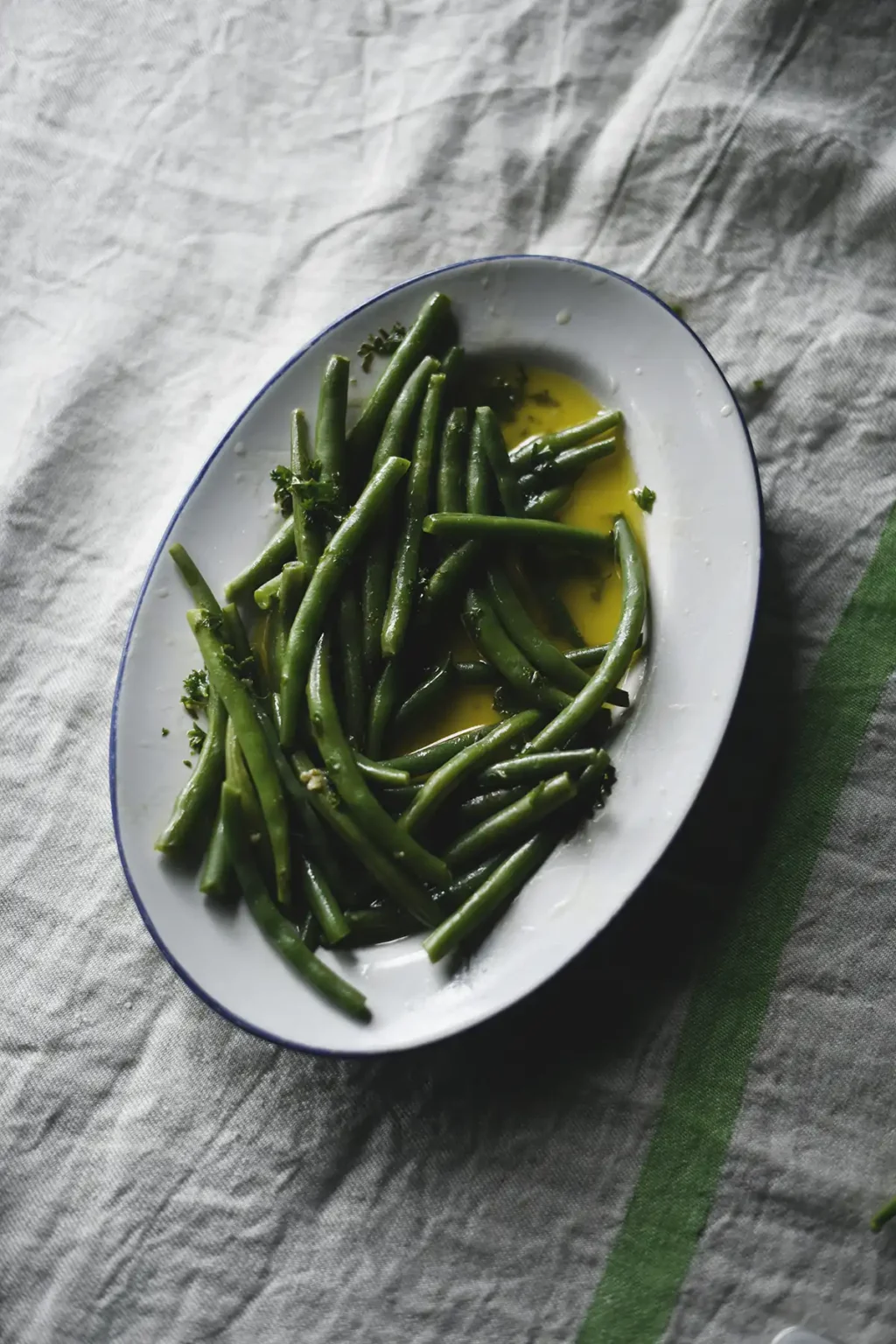 Keitä papuja miedosti suolatussa, kiehuvassa vedessä noin 6–7 minuuttia, kunnes pavut ovat pehmenneet hieman. Niiden kuuluu kuitenkin olla vielä rapeita – varo siis keittämästä niitä liian kypsiksi. Valuta kuuma vesi pois ja jätä pavut kylmään veteen jäähtymään, jotta kypsentyminen pysähtyy. Sulata voi kattilassa ja sekoita kulhossa sitruunanmehun kanssa. Silppua halutessasi joukkoon tuoretta yrttiä, esimerkiksi persiljaa. Kaada voi-sitruunakastike papujen päälle juuri ennen tarjoilua. Pavut sopivat lisukkeeksi niin kalalle kuin lihallekin.